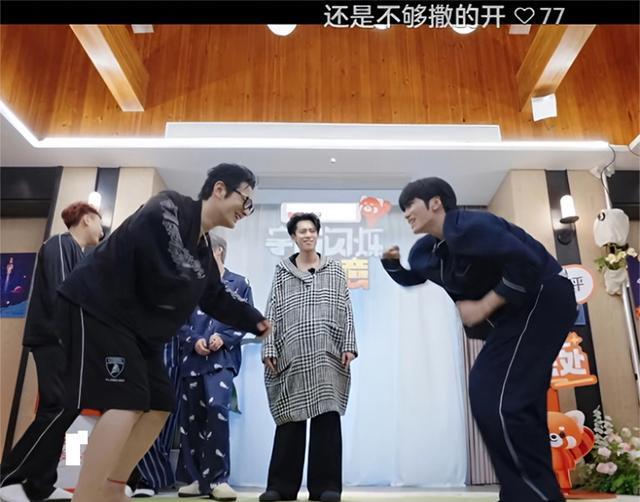 最令人感到尴尬的莫过于互夸环节了,黄晓明和对方对视着彼此捧场,结果只挤出两个词:“大大小小很尖尖”,这哪里算得上夸奖,简直就像小学生互相抄作业答案一样敷衍,再看看王鹤棣和刘耀文,聊作品、谈兴趣、说身材,每句话都清楚明白、言之有物,等到邵子恒被于洋呛得哑口无言时,还是王鹤棣凑到他耳边低声指点回应方式,这种突发状况,就算换作AI在场,恐怕也难以应对。